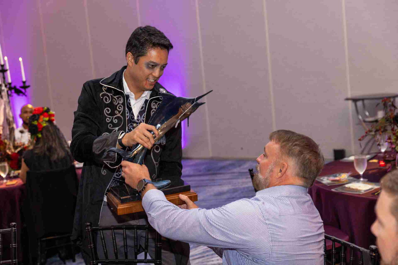 From eerie elegance to ocean-inspired creativity, the costumes were nothing short of amazing. Ghostly anglers, glamorous ghouls, and even a few free-swimming marlin filled the room, bringing the Halloween spirit to life. More than 200 guests enjoyed an evening of great food, good company, and lively bidding, all for a great cause.
